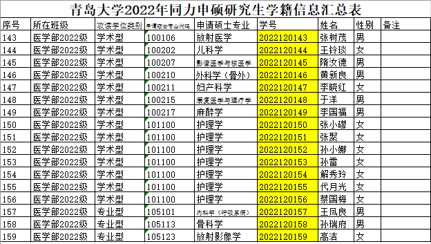 请以下学员提前将学籍注册材料“青岛大学同等学力人员申请硕士学位学生登记表”(一式三份,按照材料填写要求,完成单位签字、盖章及学费发票复印件黏贴,入档材料,请认真填写)和“学籍重新注册申请”表(一式一份)于2023年1月6日(周五)前邮寄至医研办,烦请使用顺丰快递。