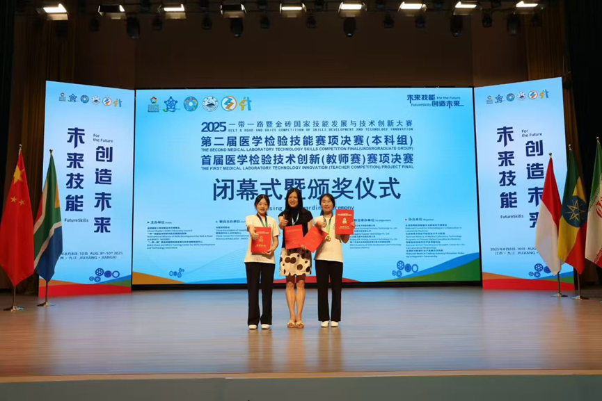 2025年8月8日至10日,“一带一路”暨金砖国家技能发展与技术创新大赛——第二届医学检验技术赛项(本科学生组)暨首届医学检验技术创新赛项决赛(本科教师组)在九江学院成功举办。经过激烈角逐,青岛大学徐文华教授带领青岛医学院医学检验技术专业2022级本科生霍艳芳、贺雨菡勇夺一等奖,青岛大学荣获“最佳组织奖”,徐文华教授等获评“优秀指导教师奖”。
